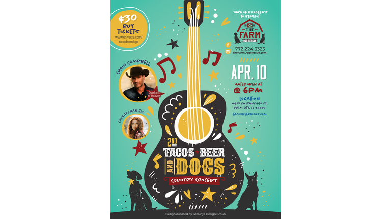 Come out and support The Farm Dog Rescue's 2nd Annual Taco's Beer and Dogs Country Concert.