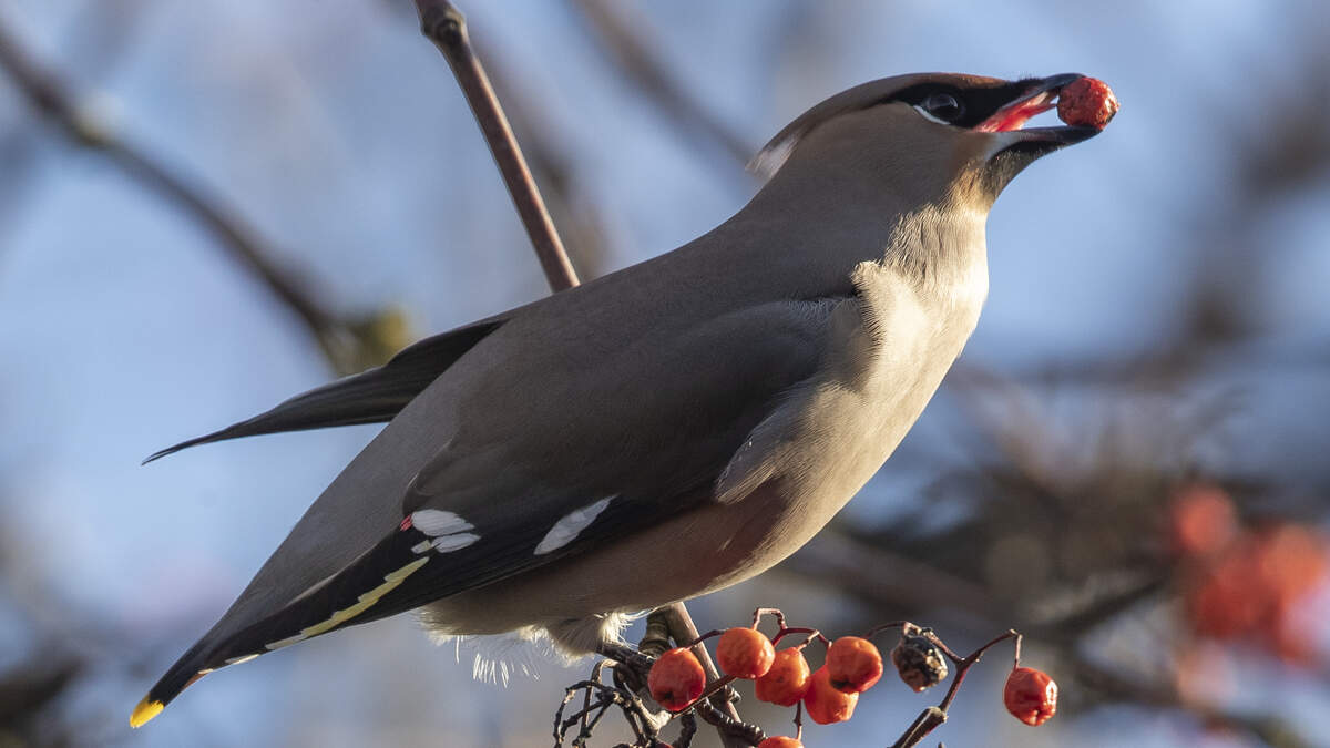 The birds have beautiful feathers and are really a sight to see. But if they get 'drunk' on the berries, they can get disoriented and act uncoordinated and fly into things, plus create more bird droppings than usual.